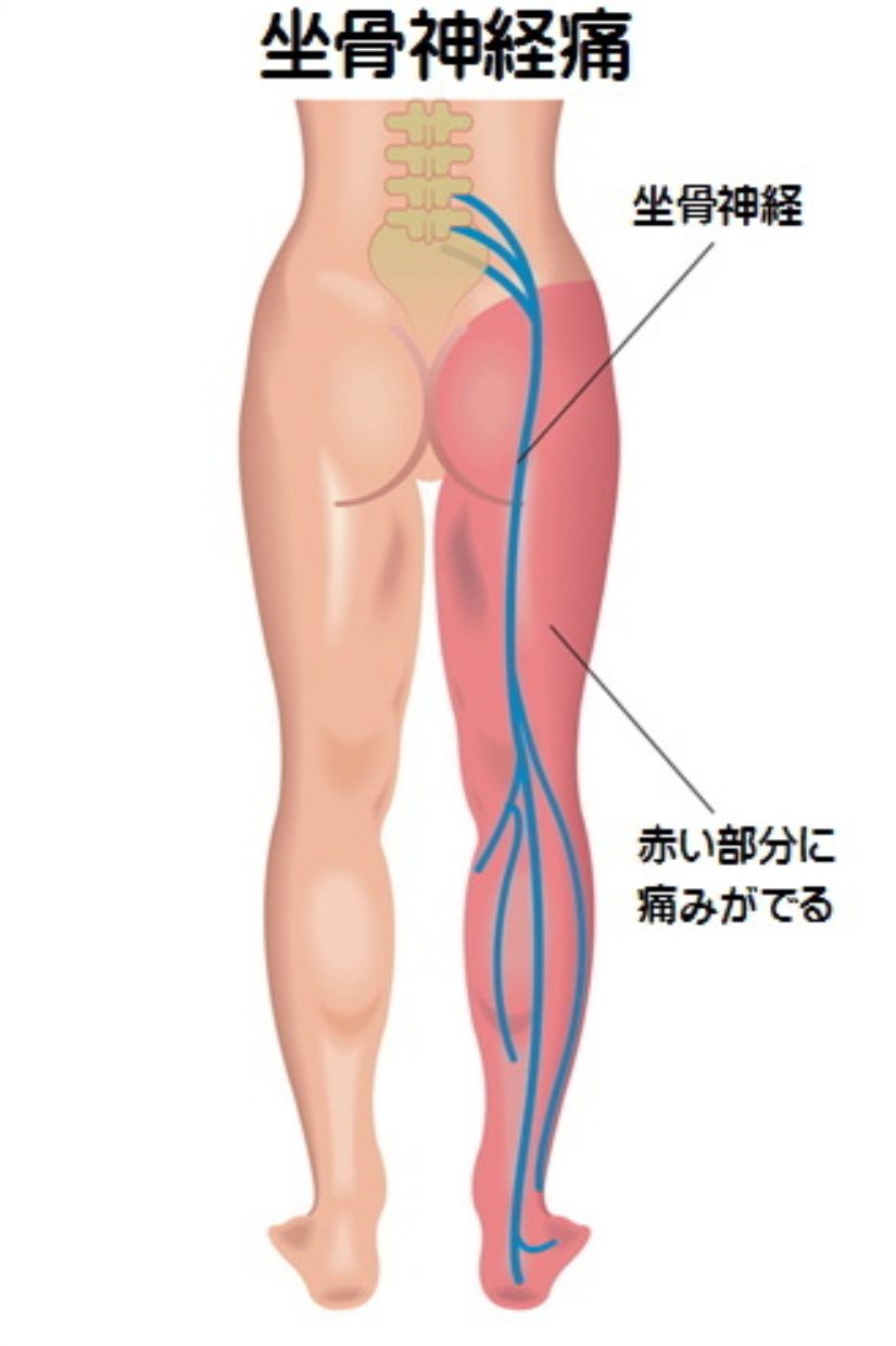この「坐骨神経」が様々な原因により圧迫や絞扼(筋肉と筋肉、または筋肉と骨などに神経がはさまれる)され痛みや痺れがでます。